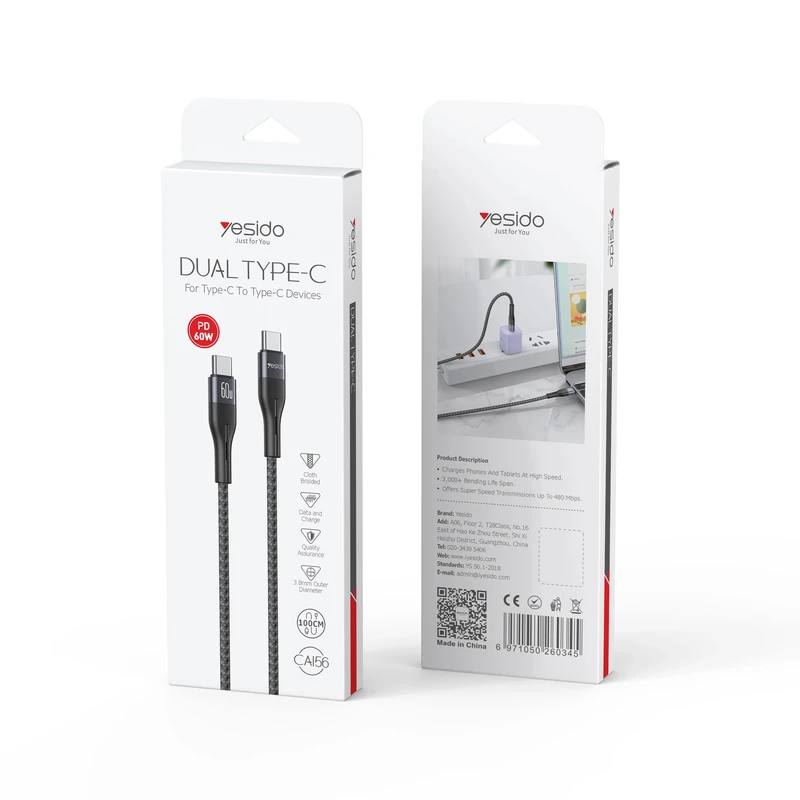 کابل یسیدو مدل DUAL TYPE-C CA156 60W طول 1 متر