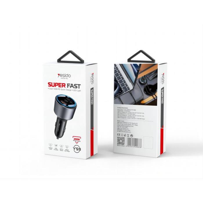 شارژر فندکی YESIDO Y59 با توان فوقالعاده ۲۰۰ وات، انتخابی بینظیر برای کسانی است که به دنبال شارژ سریع، ایمن و چندمنظوره در خودرو هستند. این شارژر با طراحی مدرن، کیفیت ساخت بالا و قابلیتهای پیشرفته، تجربهای متفاوت از شارژ در خودرو را برای شما رقم میزند.